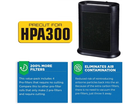 Measuring and cutting filters are time-consuming and potentially inaccurate. Now you can replace your dirty old filter in a matter of minutes! These are specially cut and designed to fit HW HPA300 Air Purifier (this is the air purifier with 3 HEPA filters). Pre-Filter Dimensions: 14.2” x 17.2” x 0.2”.