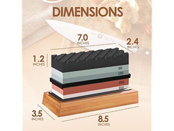 - SUITABLE FOR ALL FLAT BLADE TYPES: Two-Side Premium 400/1000, 3000/8000 A water stone can sharpen all flat blades. The list goes on and on, including scissors, pocket knives, hunting knives, and even a machete! Every home needs one of these. Other machine suppressions lack precision, grit, and durability. Our knife-sharpening stone is hand-sticky. We reinforced the bamboo foundation and box to prevent damage during transit.