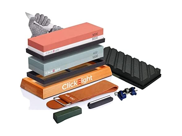 - COMPLETE KNIFE SHARPENING KIT: This stone sharpening is available in two grits. Sharpen dull knives with a 400/1000 grit water stone, enhance the edges of dull knives with a 3000/8000 grit water stone, and level and reshape your water stones with two sizes of flattening stones.