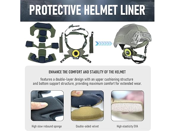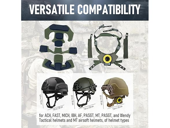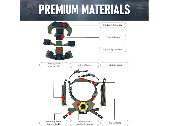 Premium Tactical Helmet Padding Kit - with Adjustable Suspension System Chin Strap and Memory for Pads - Compatible with Team Wendy, ACH, and Fast Helmets, Ideal for Army Use Accessories (Army Green)