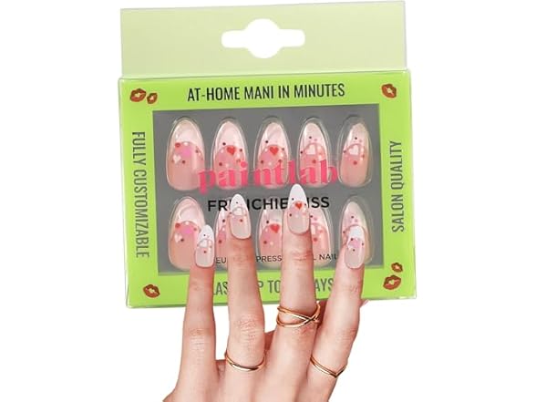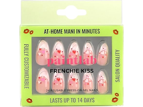 PaintLab Press-On Nails Manicure Kit, Frenchie Kiss, 24-Piece Set, Long-Lasting Fake Nails with Glue, File, Prep Pad & Cuticle Stick