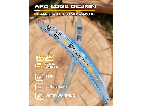 - 【Arc Edge Design】: The arc edge reciprocating saw blade is engineered to prevent binding in the cut. This arc edge pruning blade design reduces resistance and blade deflection, resulting in smoother, more controlled cuts and enhanced efficiency for your reciprocating saw.