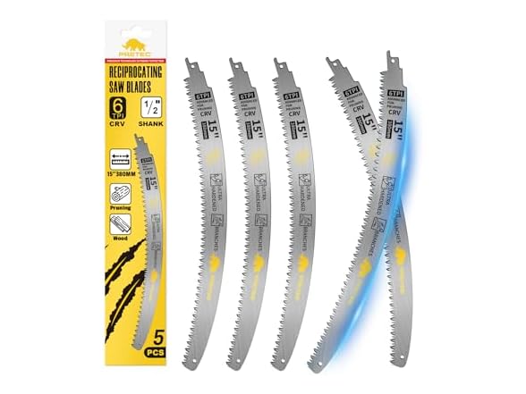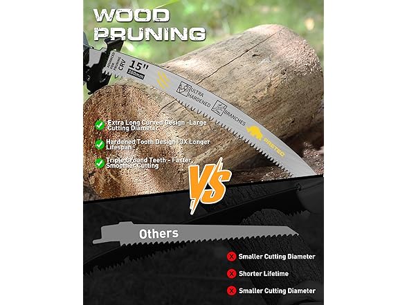 - 【Designed for Wood】: These 6 TPI reciprocating saw blades pruning blades are optimized for wood. Whether you need a pruning blade for reciprocating saw to cut wet wood, dry wood, or logs, this versatile reciprocating saw blade handles common tasks effectively.