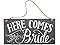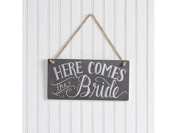 Primitives by Kathy 26915 Chalk Art Wedding Hanging Sign, 12 x 6-Inches, Here Comes the Bride