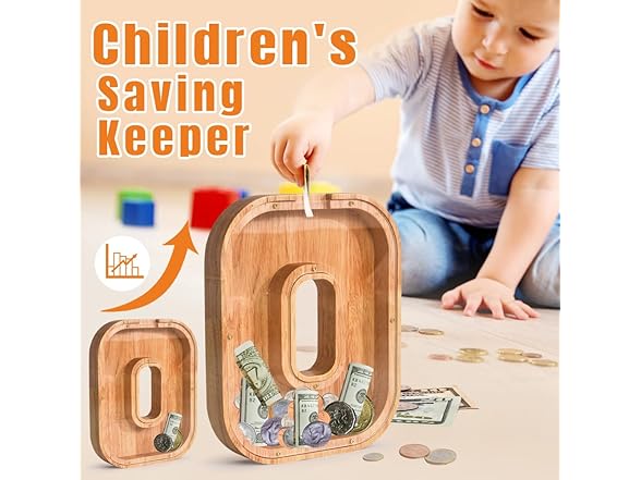 - 🐷REUSABLE COIN BANK FOR KIDS- Unbreakable wooden letter piggy bank for boys, girls, kids, toddlers and adults. when taking the money off, all of the screws on piggy bank need to be taken off. Developing saving habits isn't just about finances; it's about shaping your future. Be bold and take charge of your financial destiny. Saving is your path to financial freedom, a way to chase dreams, and conquer life's uncertainties with confidence