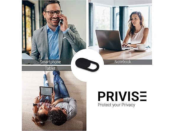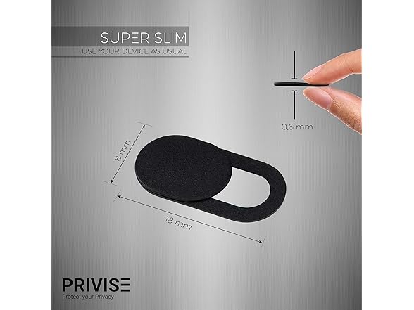Privise Webcam Cover, Special Edition from Germany, Our Thinnest Webcam Cover Slider for MacBook, Laptop, Cell Phone, Tablet, iPad, Set of 8, Black