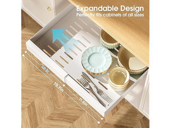 - 【Expandable Design】The Delamu cabinet drawer features an adjustable design that can be customized to fit various kitchen cabinet sizes. It can expand from 11.8" to 19.7" in width. This allows you to effortlessly adjust the width of drawers to suit your kitchen cabinet base's width.