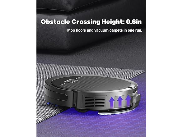 【Slim Design】 PUREATIC V3 robot vacuum Slim with a 2.99” height which allows robot to move around low furniture and hard-to-reach corners. The climbing angle can reach 15°, and it can easily climb over 0.6inch thresholds or carpets.