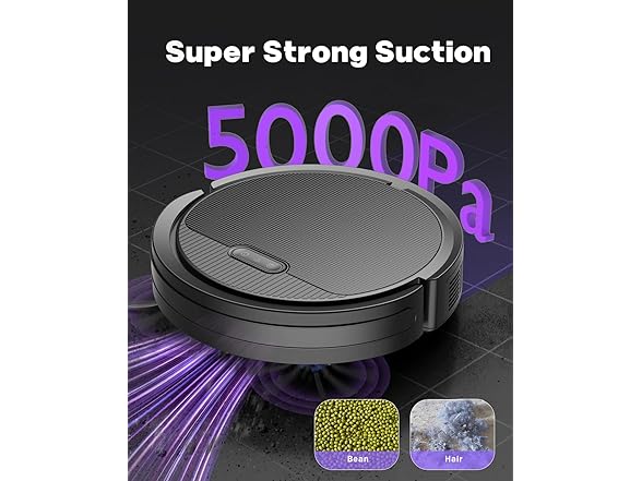 【5000Pa Powerful Suction】 PUREATIC V3 robot vacuum powerful 5000Pa suction makes clean-up easier for this robot vacuum. Vacuum up crumbs, from carpet fibers all in a single pass. Suitable for hard floors, tiles, wooden floors, and low-pile carpets.