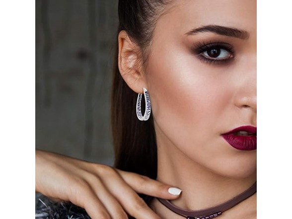 Purple and White Inside Out Crystals Hoop Earrings Made With Swarovski Elements