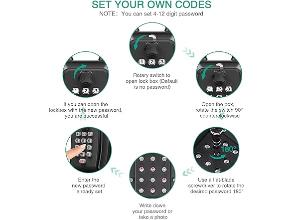 - 【9 -digit Code & High Security】The push button key lock box is designed with a new upgraded version of the 12 -bit button. And the 9 -digit key password combination is more secure and difficult to crack than the traditional 4 -digit password combination.