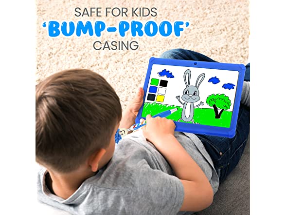 - KID-PROOF COVER & STYLUS PEN: The Youth Tablet comes w/ a super-durable silicone styled in blue color, protecting the tablet even from the clumsiest preschooler. It also includes a stylus pen, giving more touch precision for digital art