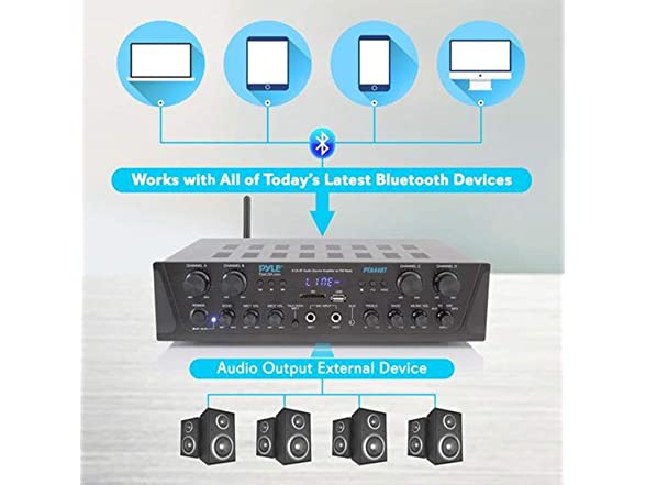 - AT-HOME ENTERTAINMENT: Wireless Bluetooth 4-channel amplifier boasts 500 watts of max power with 4 to 8 ohms and is perfect for at-home or office entertainment