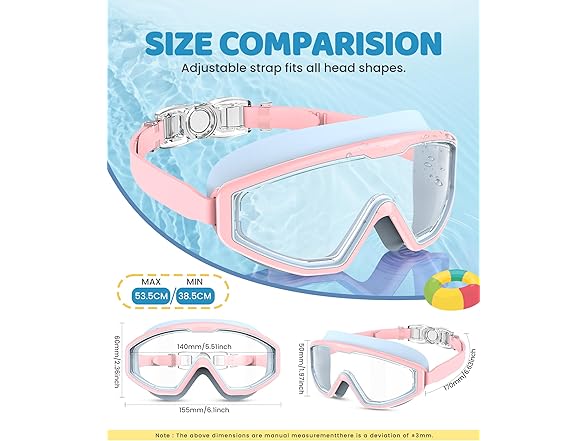 - 【ANTI-FOG SWIMMING GOGGLES FOR KIDS】Featuring dual-layer anti-fog technology, these goggles kids swim maintain crystal-clear vision underwater. The permanent inner coating prevents heat-induced fogging, ensuring distortion-free views during intense swimming activities or playful splashing.