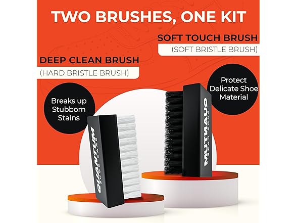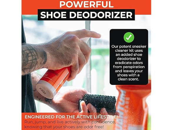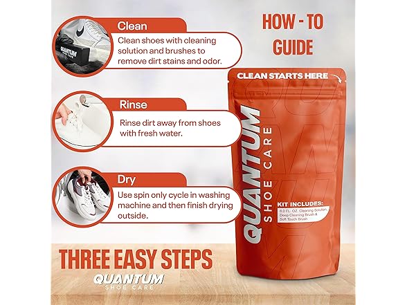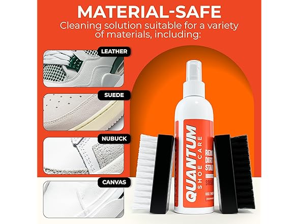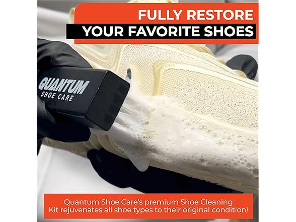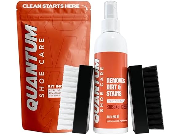 Quantum Shoe Care Sneaker Cleaner Kit - Clean, Condition & Deodorize (3-in-1) Instant ShoeCleaner for White Shoes, Suede Shoes, Leather Shoes. Comes with Soft and Stiff Shoe Brushes, 8oz Bottle