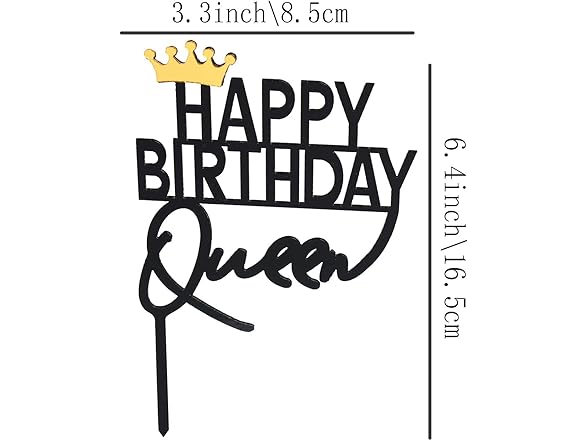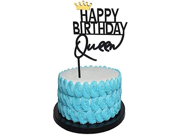 Queen Acrylic Happy Birthday Cake Topper - Party Decoration for Women's 16th, 18th, 21st, 30th, 40th, 50th, 60th, 70th Birthdays