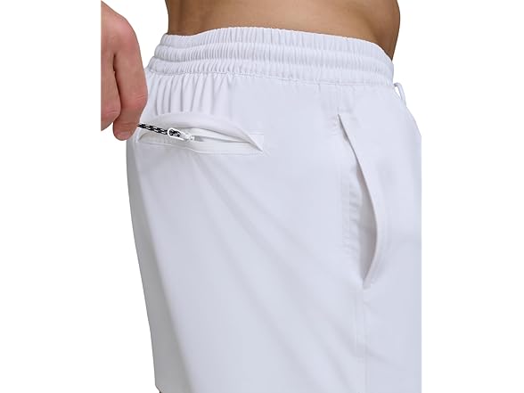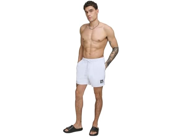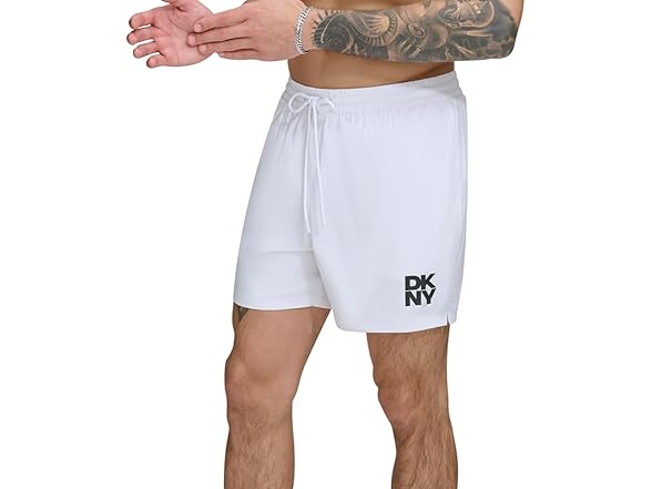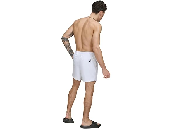 DKNY Men's Standard Stretch Quick Dry Volley UPF 40+ Protection Swim Trunk, Brilliant White