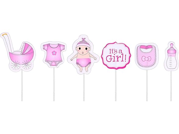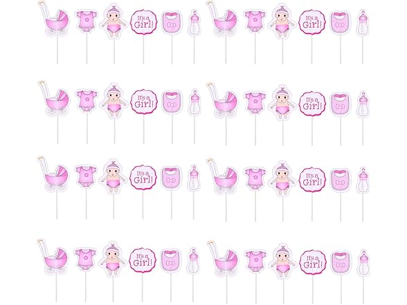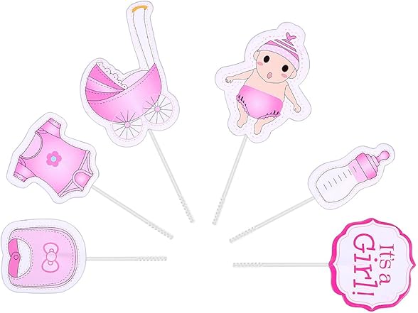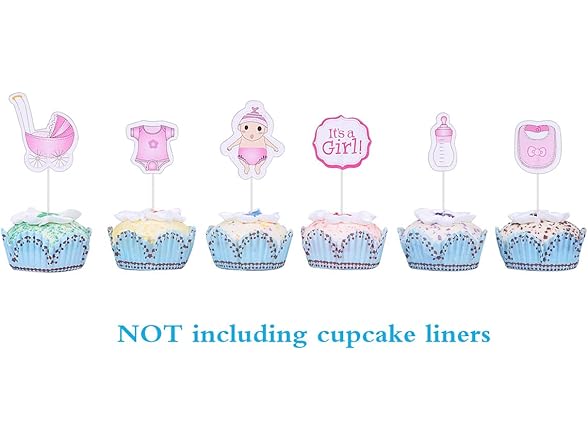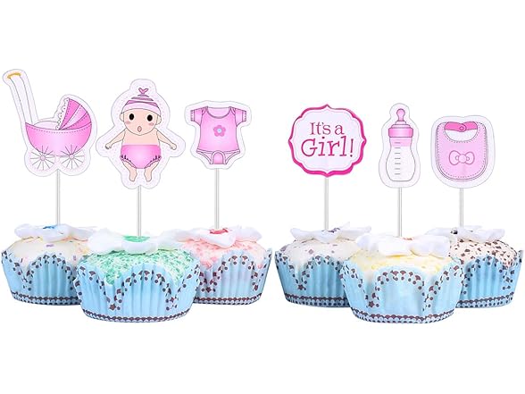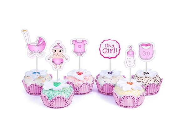 Quotidian Pink Festive Decorative Paper Cupcake Toppers 4" (10cm) Pack of 48 - Baby Shoswer Birthday Party Cake Decoration