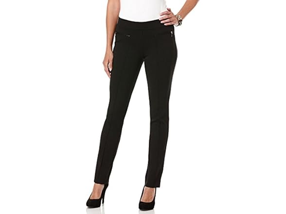Rafaella Women's Petite Ponte Comfort Slim Leg Pant, Black, 4 Petite