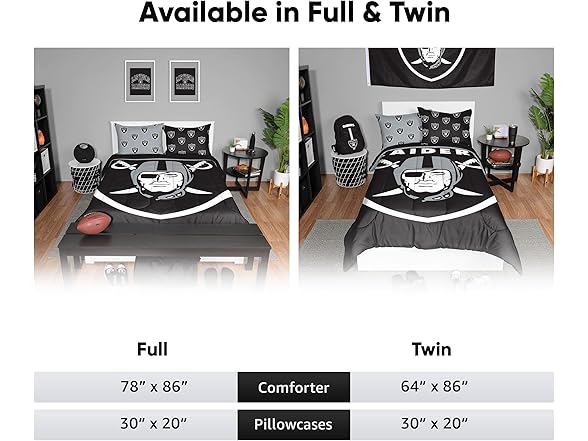 FOCO Las Vegas Raiders NFL Team Color Bed In a Bag Comforter Bedding 3 Piece Full Set