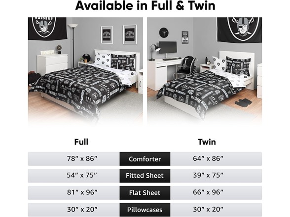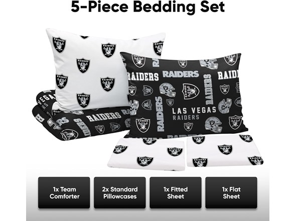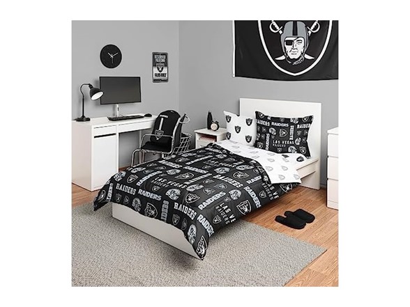 FOCO Las Vegas Raiders NFL Team Color Bed In a Bag Comforter Bedding 5 Piece Twin Set