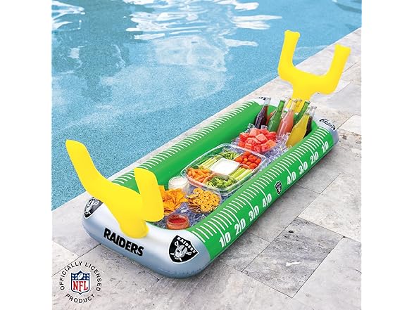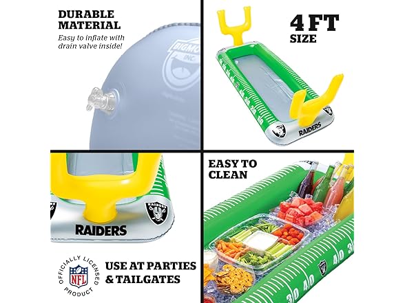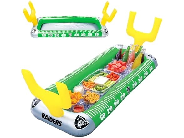 - GREAT FOR TAILGATES & PARTIES: Perfect for Las Vegas Raiders fan gatherings, this inflatable buffet keeps snacks and drinks organized while adding extra team spirit to your tailgates, BBQs, and parties.