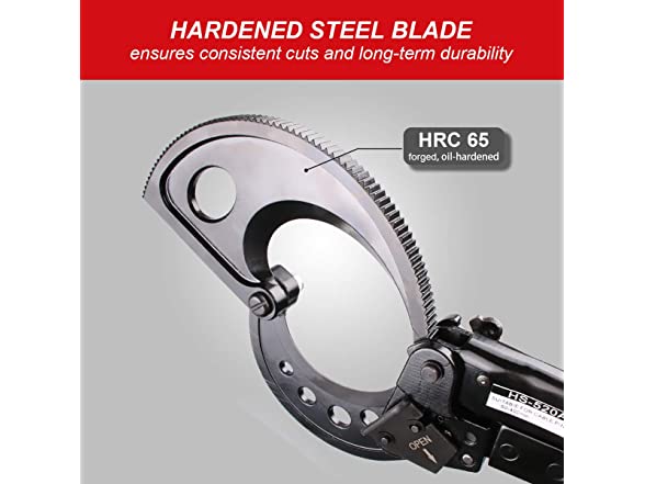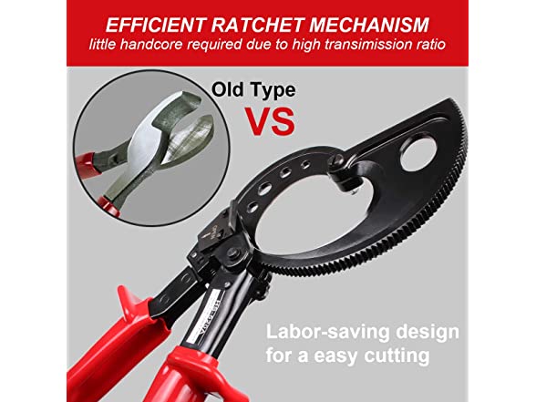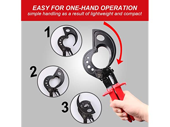 - Unique ratchet driving unit action holds cable tight and allows rapid - straight cuts with minimum effort. Hold-open spring design speeds cutting action