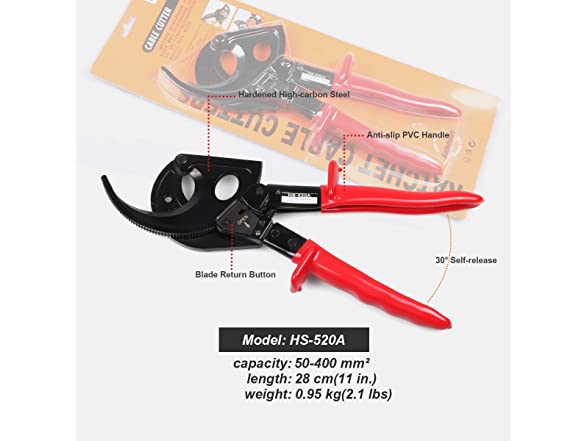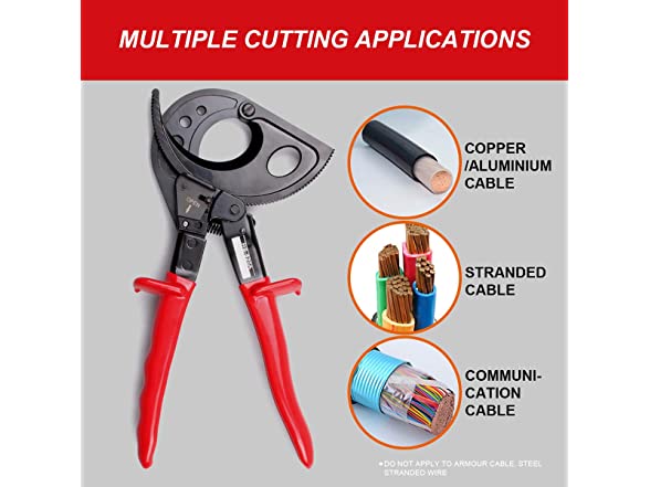 - Germany designed ratcheting cable cutters for cutting copper and aluminum single conductors as well as multiple stranded cables (400mm² Max), clean and smooth cut without crushing and deformation. Perfect tool for those who need to cut large wires without the hassle