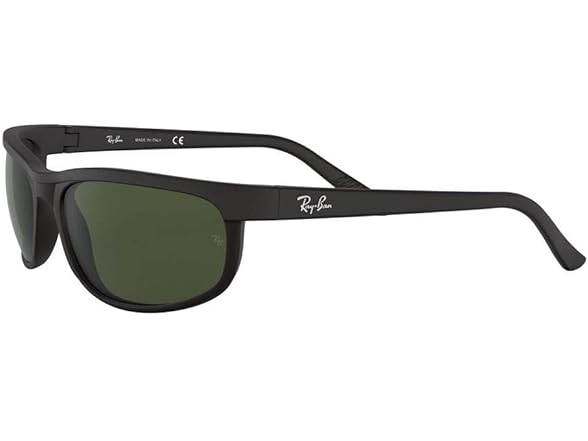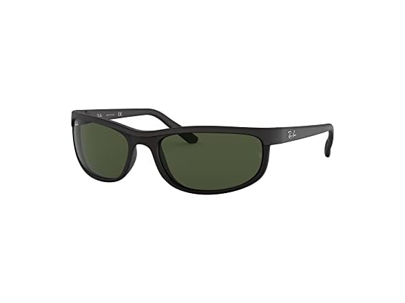 Look killer good in these sporty Ray-Ban RB2027 Predator 2 sunglasses. Lightweight plastic propionate frames. G-15xlt glass lenses absorb up to 70% of visible light and 100% of all UV and some blue light without altering color relationships. Base curve 8. Lenses are Rx-Able (prescription ready). Integrated nose pads. Brandmark at temples. Protective case included. Dimensions:Lens 60mmW x 33mmHBridge 16mmTemple 124mm