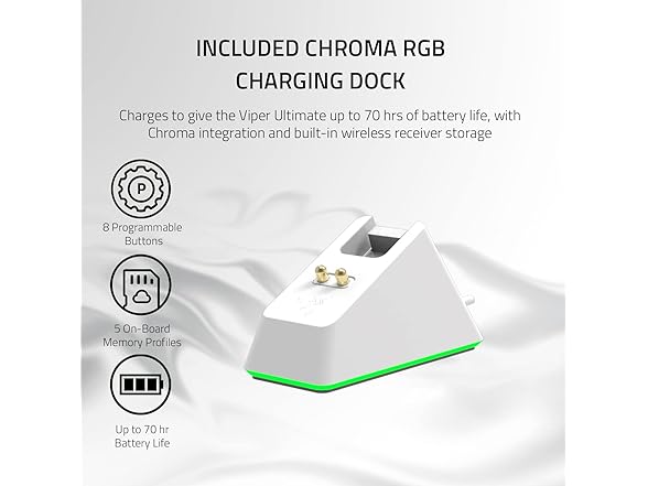 Razer Viper Ultimate Lightweight Wireless Gaming Mouse & RGB Charging Dock: Hyperspeed Wireless Technology - 20K DPI Optical Sensor - 74g Lightweight - 70 Hr Battery - Mercury White