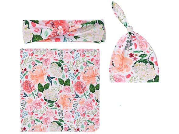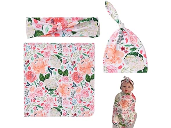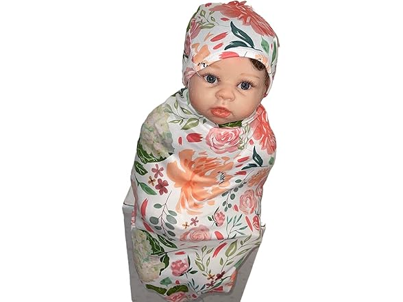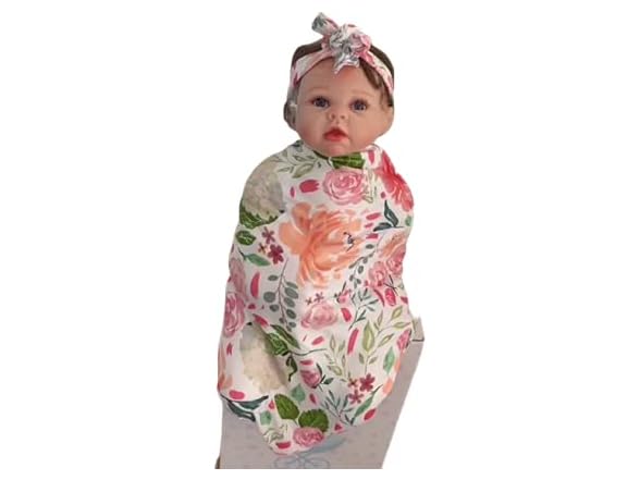 Reborn Baby Dolls Clothes Floral Swaddle Blanket for 18-24 inch Reborn Dolls ,Receiving Blanket +Bow Headband +Hat Sets Accessories