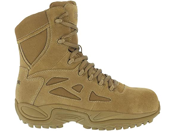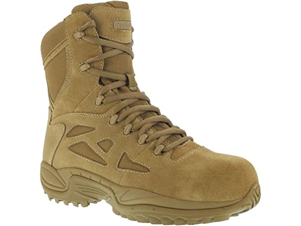 - Designed to excel in demanding environments and adverse conditions, the Reebok Work Rapid Response RB 8" Composite Toe Military Boot gives you the performance edge you need on base or outside the wire