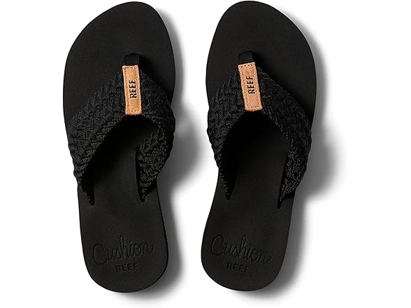 Reef Cushion Threads Womens Flip Flop, Ultra Soft Cushion Footbed, Arch Support, Black, 6