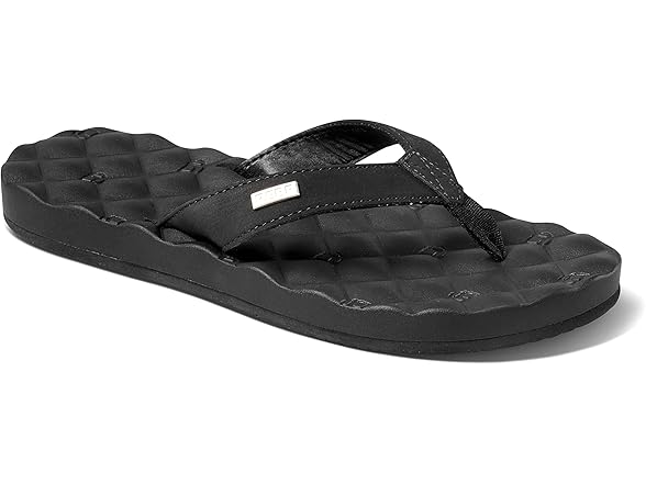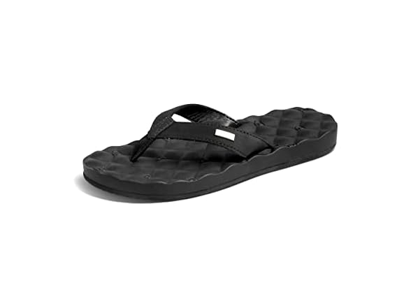 Reef Dreams Womens Flip Flop, Memory Foam Cushion Footbed, Faux Leather Satin Lined Strap, Black/Black, 6