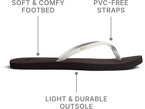 Reef Bliss Nights Womens Flip Flop, Super Lightweight and Soft Footbed, Thin Strap Beach Sandal, Brown/White, 6