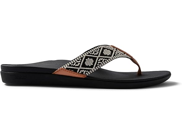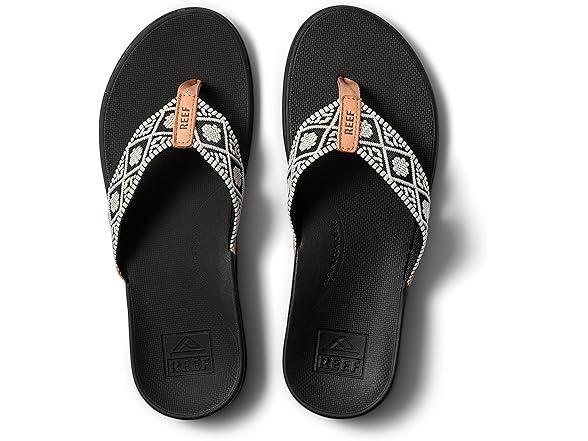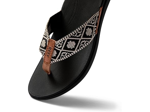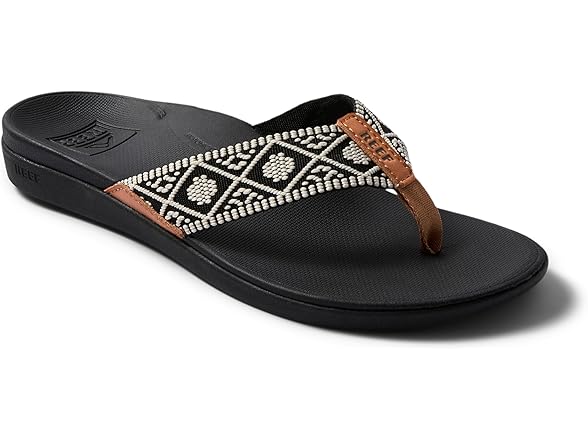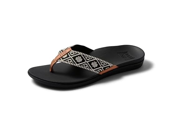 Reef Ortho Woven Womens Flip Flop, Arch Support and Soft Cushion Footbed, Black/White, 11