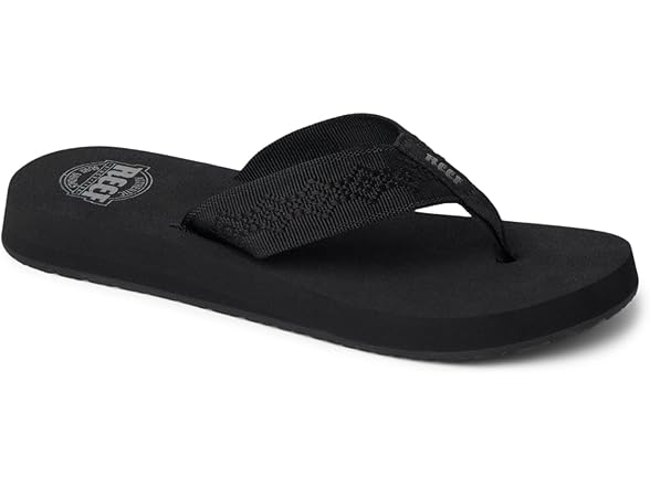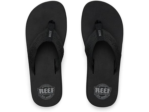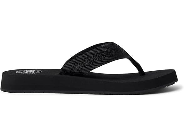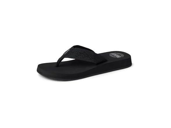 Reef Sandy Womens Beach Flip Flop, Soft Woven Strap Made From 100% Recycled PET, Black/Black, 5