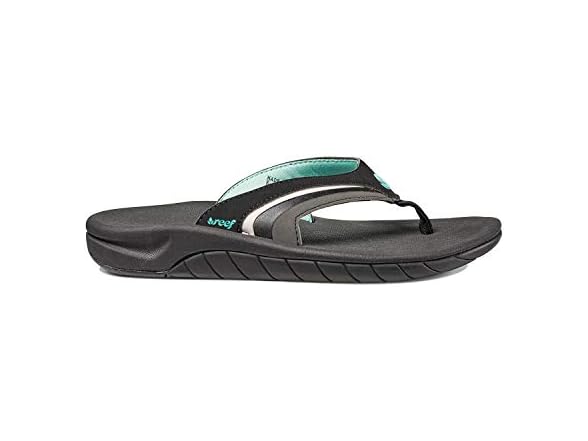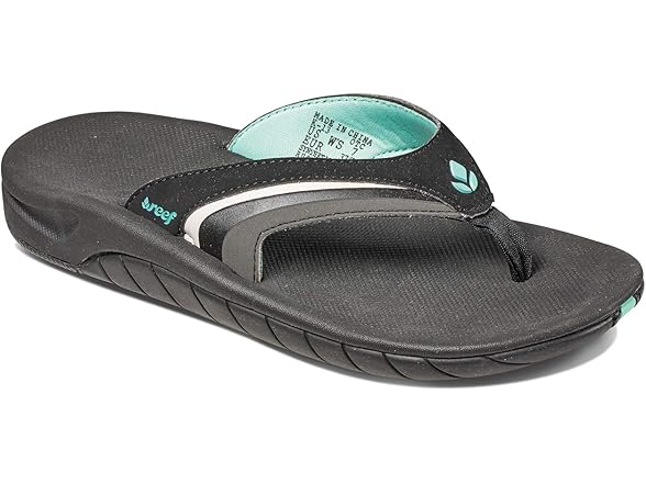 Reef Slap Womens Beach Flip Flop, Arch Support, Durable Outsole, Water Friendly, Black/Black/Aqua, 11
