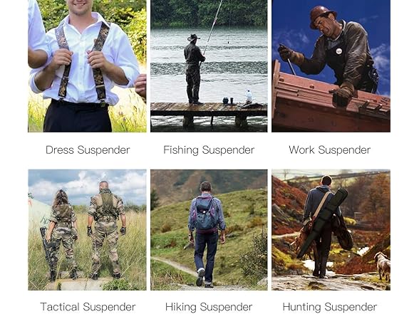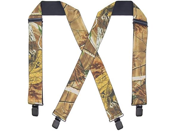 Men's Camo Suspenders with 4 Snap Hooks 2 Inch Heavy Duty X- Back Swivel Hook Brace (camouflage W4)