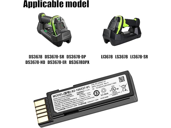 Renekton DS3678 Battery for Zebra 3600 Series Scanners DS3678 LI3678 LS3678 DS3678-SR DS3678-DP LI3678-SR DS3678-HD DS3678-ER DS3678DPX 3150mAh