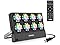 - LIGHT WEIGHT: this RGB floodlight is made of ceramic and high quality PC, not electric conductive aluminum, fragile glass or heavy steel. 8 LIGHT SOURCES: 120 degree beam angle, light up larger area. SUPER BRIGHT andamp; ENERGY SAVING: reach high lumen with low wattage, up to 110lm/W. 3000lm. Dimmable in 3 levels, you can control the brightness and energy consumption. 16 colors satisfy all your needs for decorative party, stage, landscape and security lighting.
