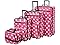 This beautiful deluxe 4-piece expandable luggage set is manufactured with a patented heavy duty EVA-molded hi-count fabric. This set is perfect for the serious and experienced traveler! Manufactured with the very best heavy duty polyester and PVC backing, this luggage set is designed for the traveler on the go and comes with three expandable uprights and a flight tote bag. It comes packed with features including: an inside retractable handle, EZ-Roll in-line skate wheels, back zippered secured pockets, top and side comfort grip handle, stability bars at the bottom to avoid tilting, and locks & keys. Upright features include: Clear in-line skate wheel system for smooth ride Push-button self-locking internally stored retractable handle system Ergonomic and comfortable padded top and side grip handles Two front full size zipper-secured pockets Three internal organizational pockets for all your traveling needs Each upright's interior is fully lined with a durable and elegantly imprinted lining Elegant silver pewter heavy duty industrial hardware Carry-On Flight Tote Bag features include: Elegantly imprinted full interior lining Detachable and adjustable non-slip shoulder strap Spacious main compartment Maximum strength industrial hardware 19-inch Carry-on Upright: 20 inches high x 12. 5 inches wide x 7. 5 inches expandable to 10 inches deep (with wheels). 6 lbs. 24-inch Upright: 24 inches high x 16 inches wide x 10 inches expandable to 12 inches deep. 8 lbs. 28-inch Upright: 28 inches high x 18 inches wide x 12 inches expandable to 14 inches deep. 9 lbs. Carry-On Flight Tote Bag: 14 inches wide x 11 inches high x 5 inches deep – 1 lb.