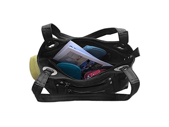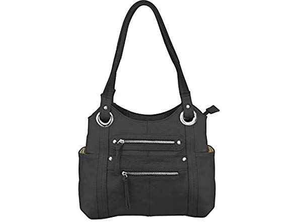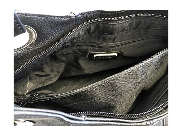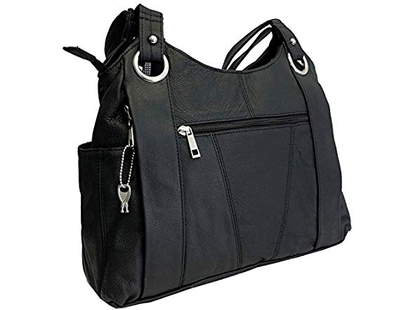 (1) Roma Leathers Leather Locking Concealment Purse - CCW Concealed Carry Gun Shoulder Bag, Black (7008-BLK)