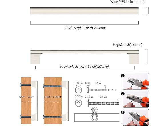 ROMATEE 10 Pack 9 Inch(228mm) Cabinet Pull Brushed Satin Nickel Kitchen Cabinets Handles Nickel Cabinet Hardware for Cupboard Kitchen Pulls for Cabinets Drawer Handles
