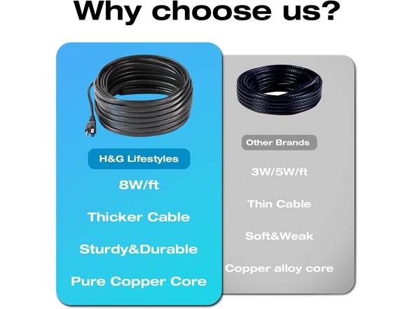 - ★Safe and Healthy Construction★ Crafted with polyolefin inner insulation, TPE protective layer, and tinned copper core, our heat cable prioritizes safety and health, ensuring a reliable and durable heating solution.
