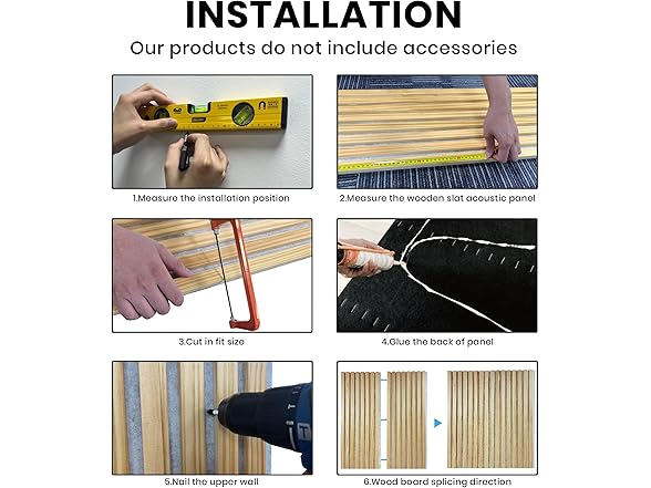 - 【Optimal Fastening Technique】For maximum soundproofing, we recommend attaching panels to horizontal 2" wooden rods embedded in the wall, rather than directly to the wall itself.