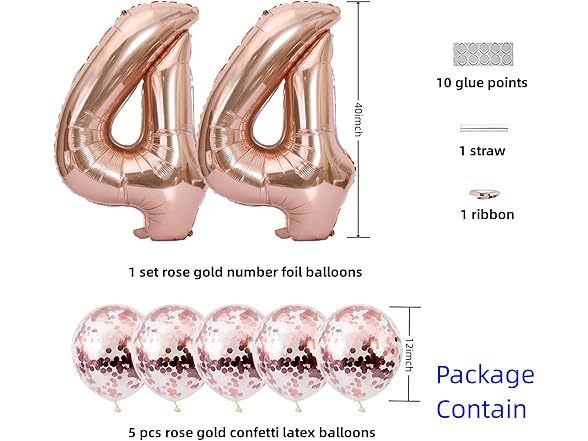 Rose Gold 44 Foil Balloons 40" Jumbo Foil Balloons Confetti Balloons for 44th Birthday Wedding Anniversary Party Decorations