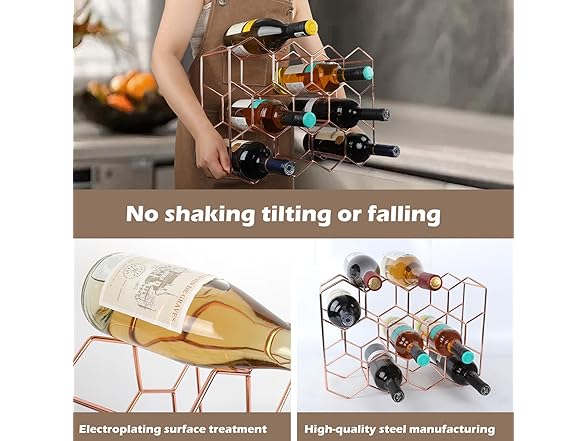 - Effortless Maintenance: Remove the bottles, give it a quick wipe with a damp cloth to clear away dust and grime, and voilà— your wine rack is back to its pristine beauty, ready to hold your bottles once more.