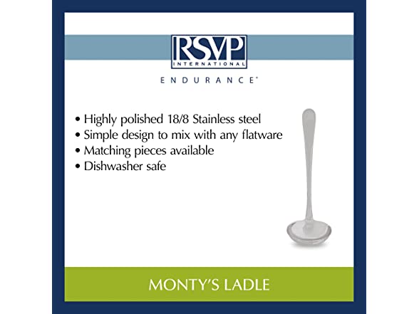 RSVP International Endurance Flatware Collection Stainless Steel, Dishwasher Safe, Ladle
