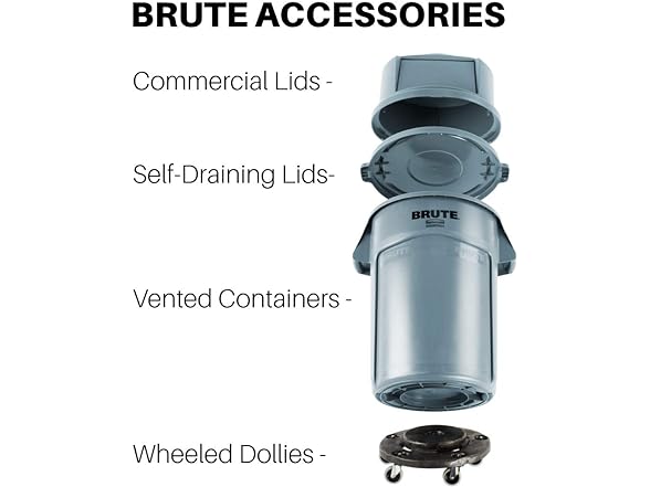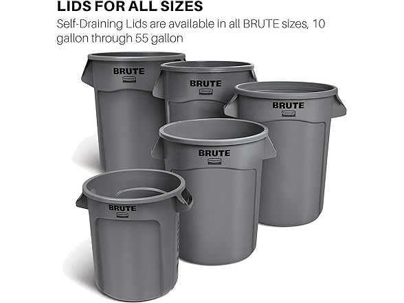 Rubbermaid Commercial Products BRUTE Heavy-Duty Trash/Garbage Can Lid, Gray, Compatible with 20-Gallon BRUTE Container, Pack of 6